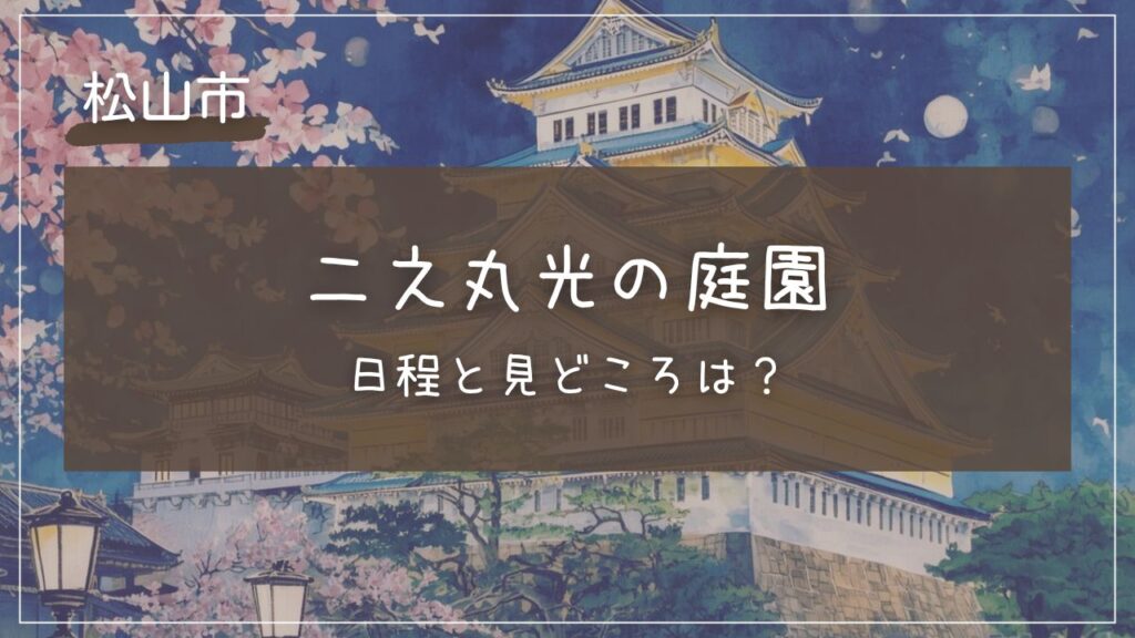 松山城二之丸史跡庭園で開催される「二之丸光の庭園」は、紅葉と光が織りなす幻想的な夜の景色を楽しめる秋の人気イベントです。週末限定で行われるライトアップや、抹茶席・花の展示販売など、昼間とはまったく違う特別な体験が満載。歴史ある庭園が光に... イベント・お祭り