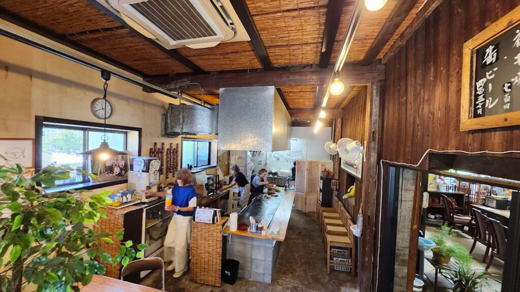 - 地元密着のアットホーム空間:鉄板前で焼きを眺めるライブ感が楽しい