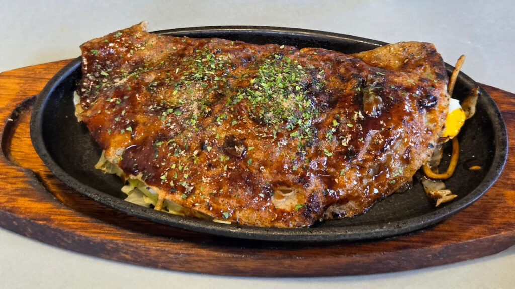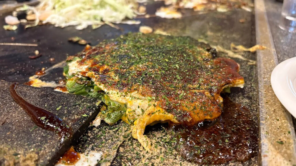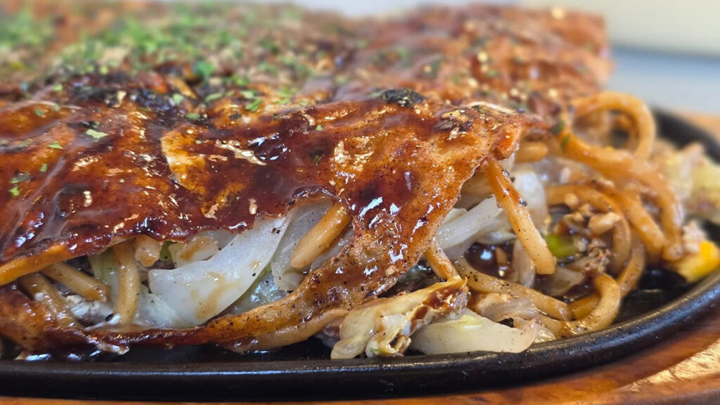 - 三津浜焼きらしい牛脂のコク香る伝統の味わい