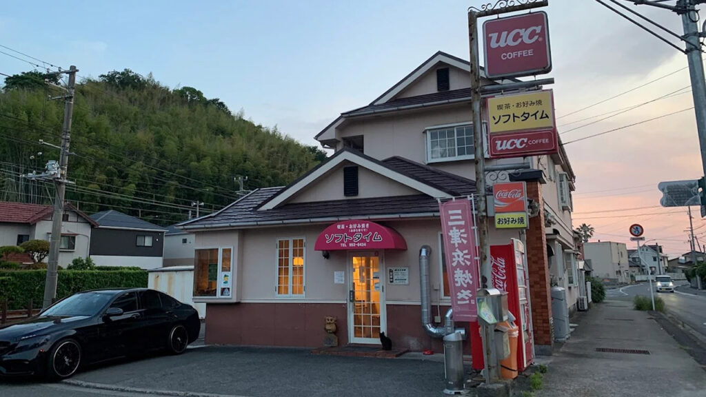 「ソフトタイム」は、昭和レトロな雰囲気が魅力の喫茶・三津浜焼き店です。店内にはフクロウの置物やクラシカルな装飾があり、訪れる人に懐かしさと安心感を与えます。三津浜焼きはそば入りや肉・卵を重ねた定番スタイルで、外は香ばしく中はもちもち。甘辛のソースやマヨネーズで自分好みに仕上げられるのも嬉しいポイントです。焼きうどんやカレーライスなど他のメニューも豊富で、食事やティータイムにも最適です。