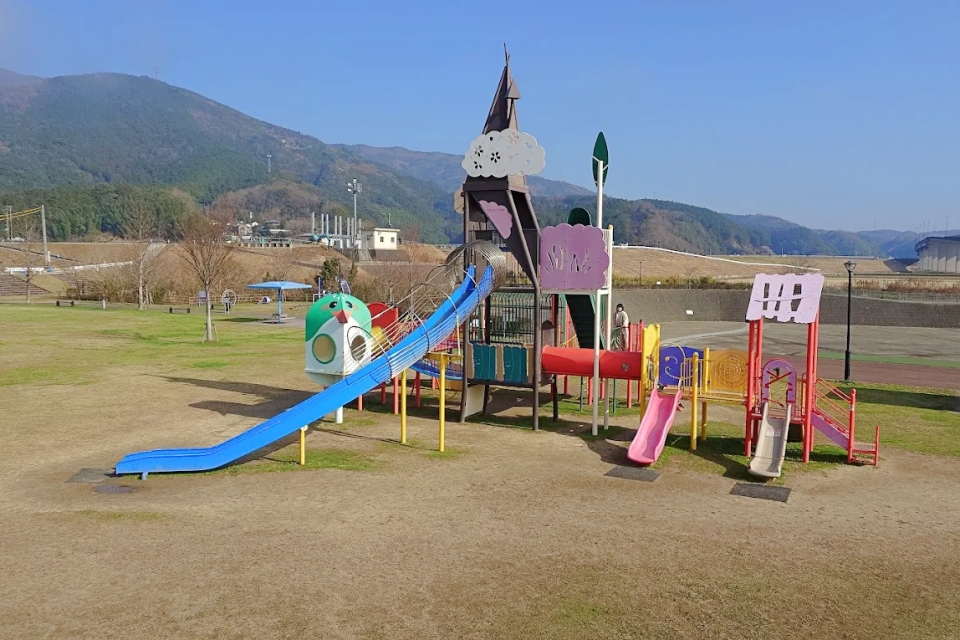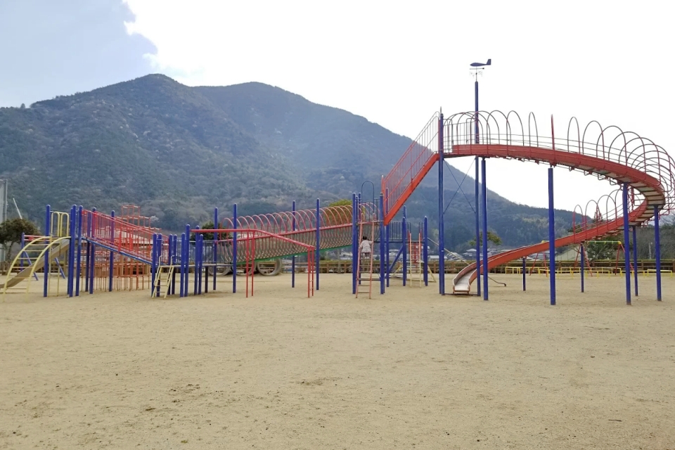 大洲市徳森にある「徳森公園」は、広い敷地に野球場や大型遊具を備えた、のびのびと体を動かせる開放的な公園です。住宅街にほど近い立地ながら、子供たちが夢中で遊べる多彩な遊具が揃っており、地元の親子連れや運動を楽しむ人々に親しまれています。春には園内の桜が美しく咲き誇り、お花見スポットとしても人気。駐車場が遊具広場に隣接しているため、小さなお子様連れでも移動の負担が少なく、晴れた日のピクニックにも最適です。少し大きめの遊具が充実しているので、活発に動き回りたい年頃のお子様には特におすすめの遊び場です。