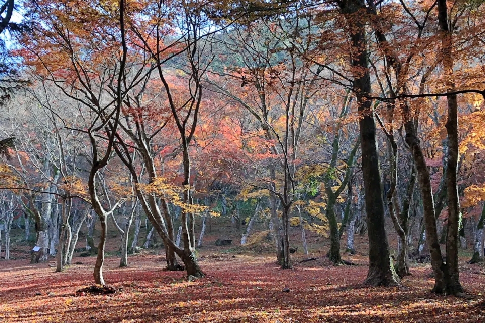 - 地元の方々の話によると、20年前と比べても非常に多くのモミジの木が密集しており、見頃の時期には息を呑むような紅葉が期待できる。