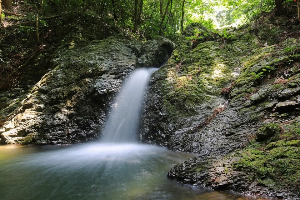 - 真夏でも豊かな緑が日差しを遮ってくれるため、涼しい空気の中で滝の音を聞きながら快適に散策できる。