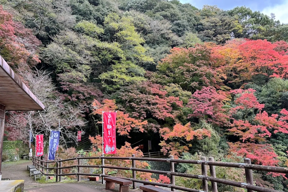 大洲市白滝にある「白滝公園」は、その名の通り美しい滝と、県内屈指の紅葉の名所として知られる自然豊かな公園です。落差のある滝が連なる渓谷沿いには、往復1〜2時間ほどで楽しめるハイキングコースが整備されており、清らかな空気の中でリフレッシュできます。道中は階段や手すりがしっかりと整っているため、ご年配の方からハイキング初心者まで安心して歩けるのが魅力です。秋には「白滝もみじフェスティバル」が開催され、夜間のライトアップによって昼間とは異なる幻想的な景色が広がります。地域の歴史である「るり姫伝説」に思いを馳せながら、四季折々の渓谷美を堪能できるスポットです。