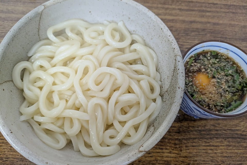 大洲市菅田町にあるちい太郎うどんは、住宅街の中にひっそりと佇む知る人ぞ知る隠れ家的なうどん店です。メニューは「かまたまうどん」の大・中・小のみという潔さで、茹でたてのコシがあるツルツル・モチモチの麺と、絶妙な甘口のつけ汁(ぶっかけ)が相性抜群と多くの人を虜にしています。営業日が限られておりランチタイムのみの営業ですが、安くてボリュームもたっぷりでコスパも最強と評判です。一般的な飲食店とは一味違う、ディープでローカルな雰囲気を味わいながら絶品のうどんを楽しめる名店です。