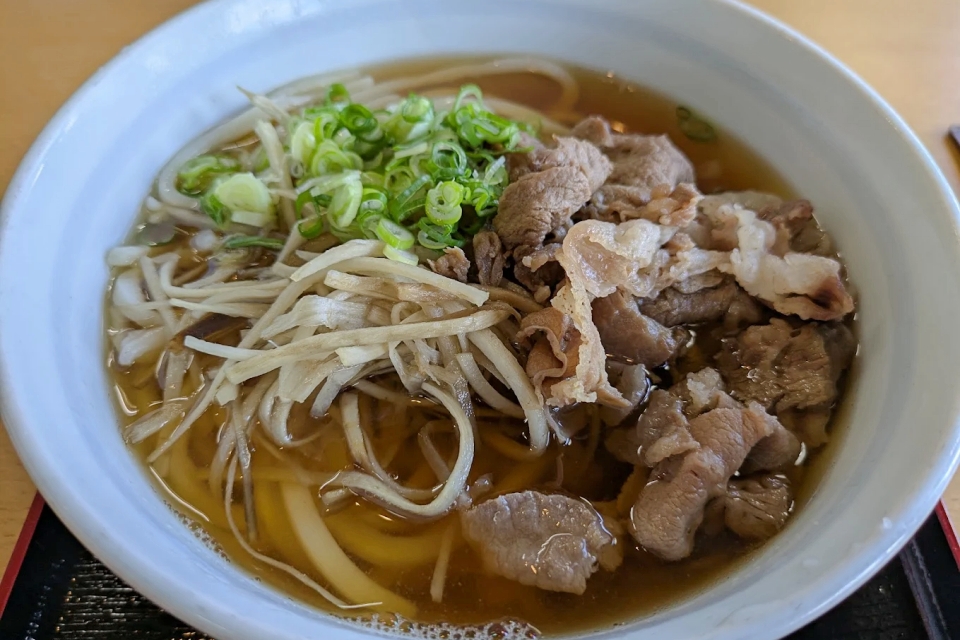 大洲市若宮にある水郷うどん店は、地元で長年愛され続けているアットホームなうどん店です。柔らかくコシのない麺が特徴で、甘めの出汁がしっかりと絡み、小さなお子様からお年寄りまで幅広い世代に親しまれています。一番人気の「肉うどん」は、ホロホロのお肉と牛蒡の風味が相性抜群で、安心感のある定番の味わい。また、うどんと親子丼の「ハーフアンドハーフ」などボリューム満点のセットも充実しています。提供スピードが非常に早く、一人でも家族連れでも気軽にサッと立ち寄れる利便性の高さも魅力です。